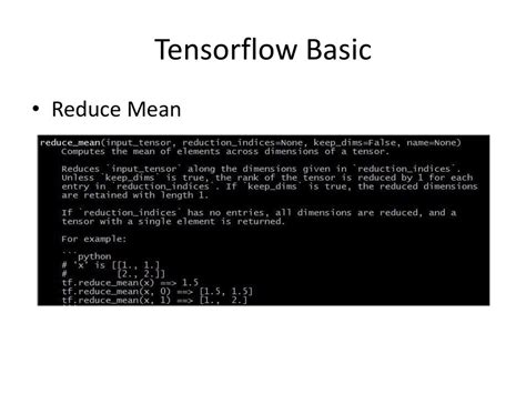 Tensorflow Reduce_Mean. Web what does the function reduce_mean do? The execution time on gpu is very large and is approximate same as (or more than) the time.